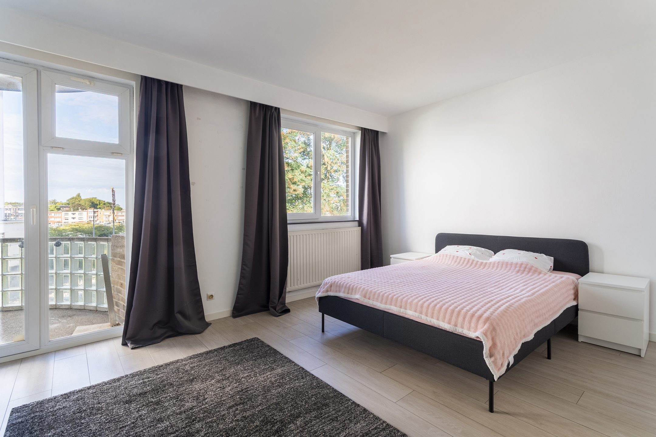 De oorspronkelijke indeling met drie slaapkamers aan de achterzijde werd aangepast naar twee zeer ruime, volwaardige slaapkamers die beide toegang geven tot het gezellige terras met late namiddag & avondzon.